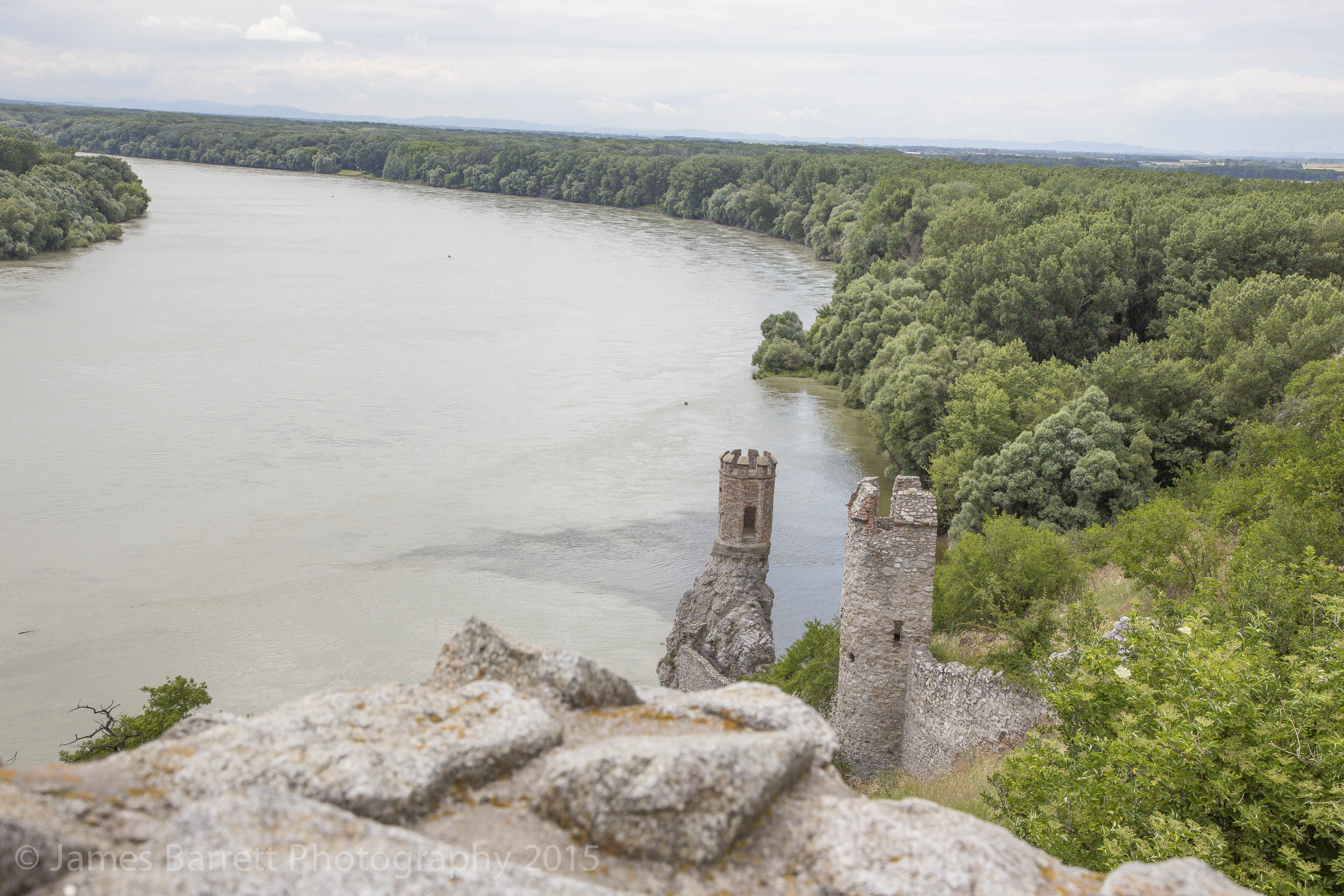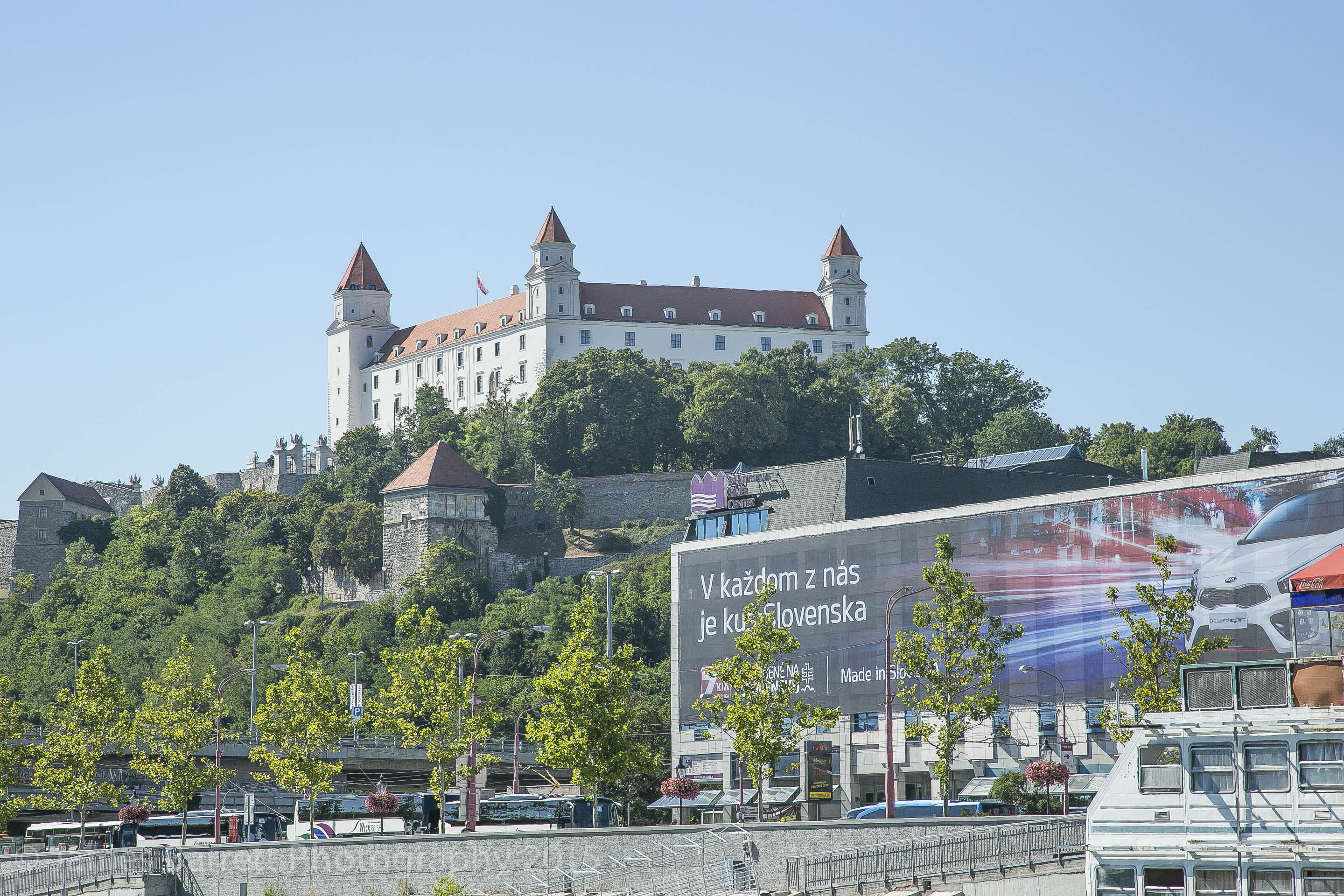 Bratislava Castle https://en.wikipedia.org/wiki/Bratislava_Castle , built on the remains of a Roman settlement, is at the center of Europe: at the confluence of the Carpathians and the Alps, trade routes from the Balkans (Adriatic Sea) to the Rhine or Baltic Sea, and an important ford used to cross the Danube River. From the castle, one has a panoramic view of Bratislava and the Danube.