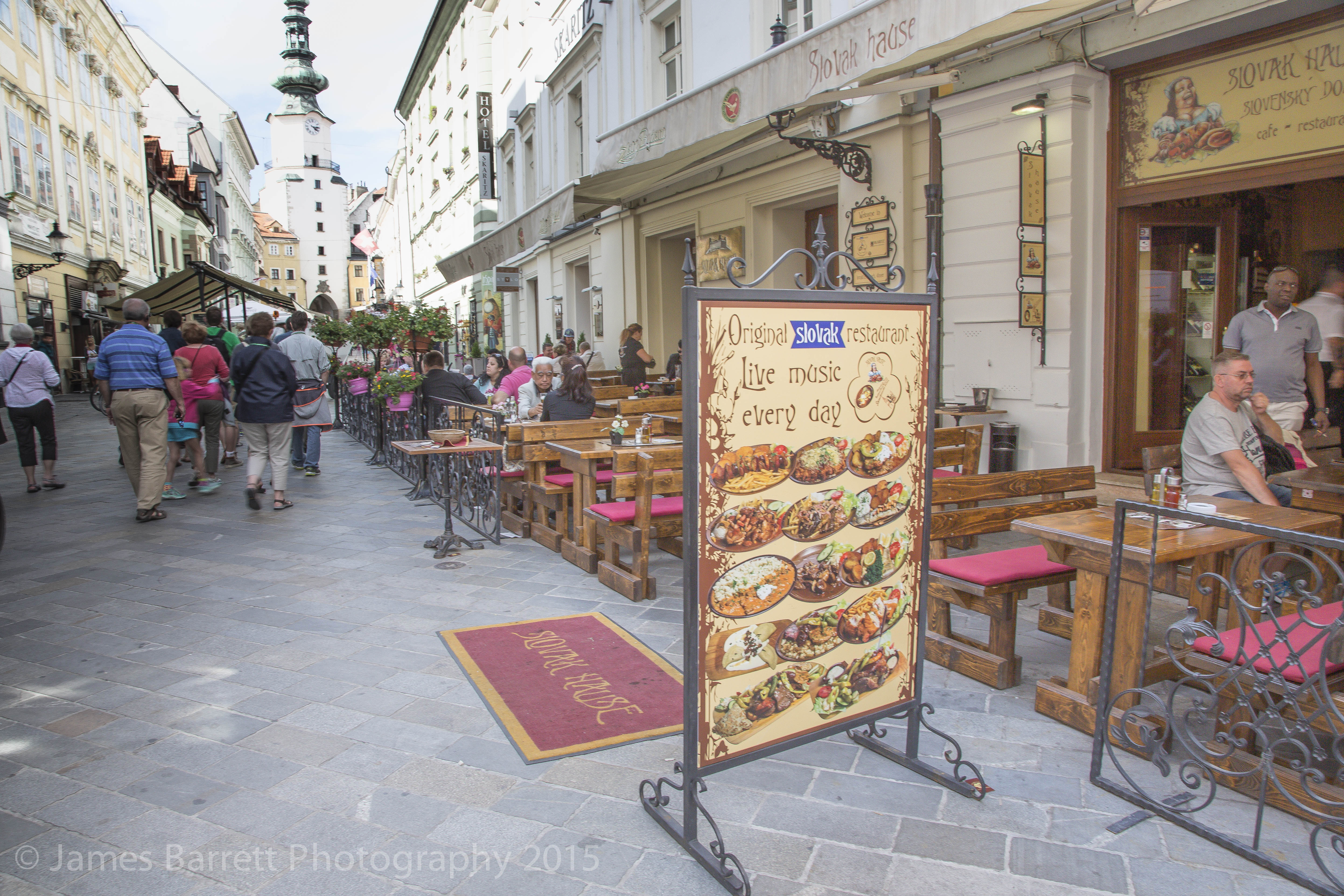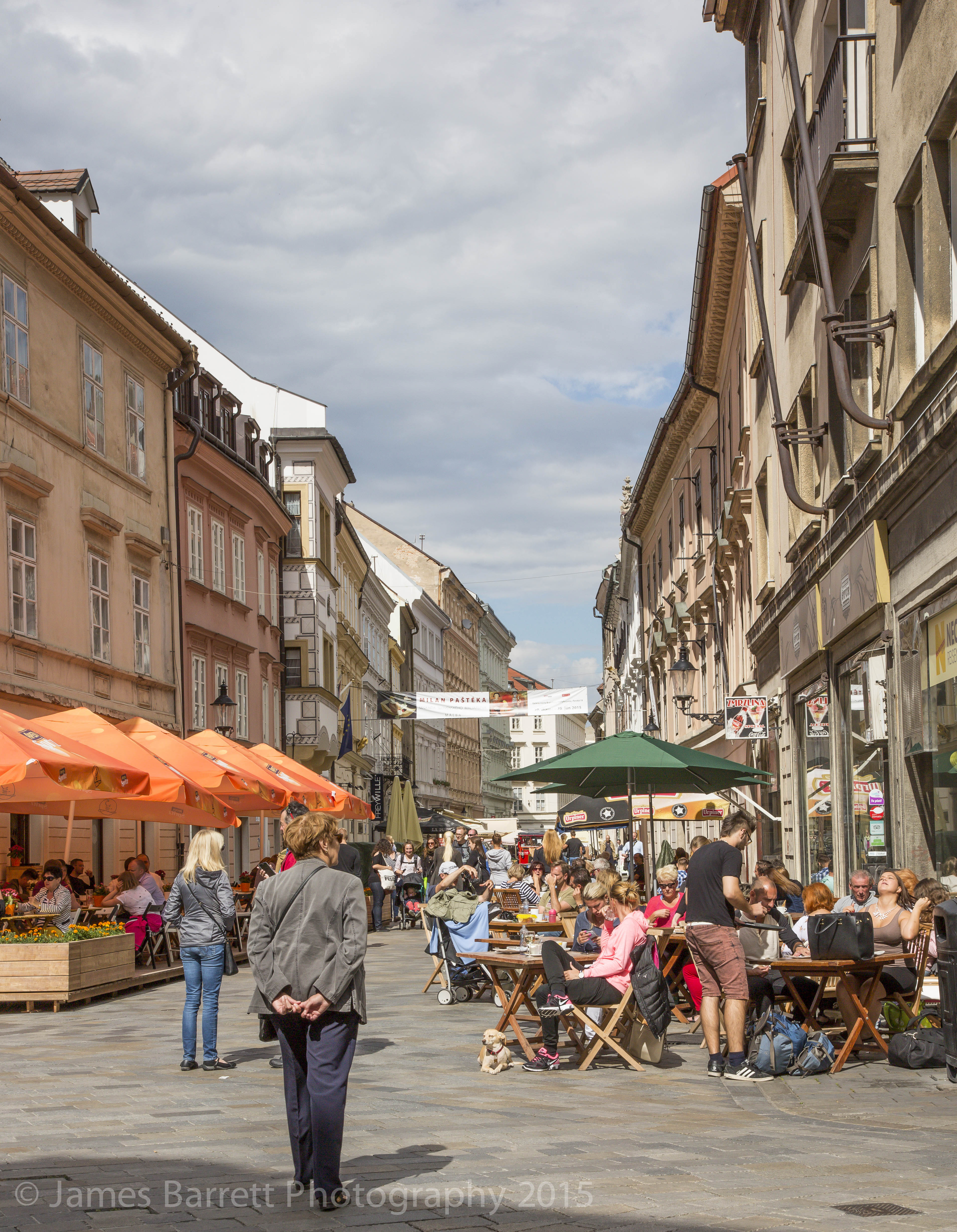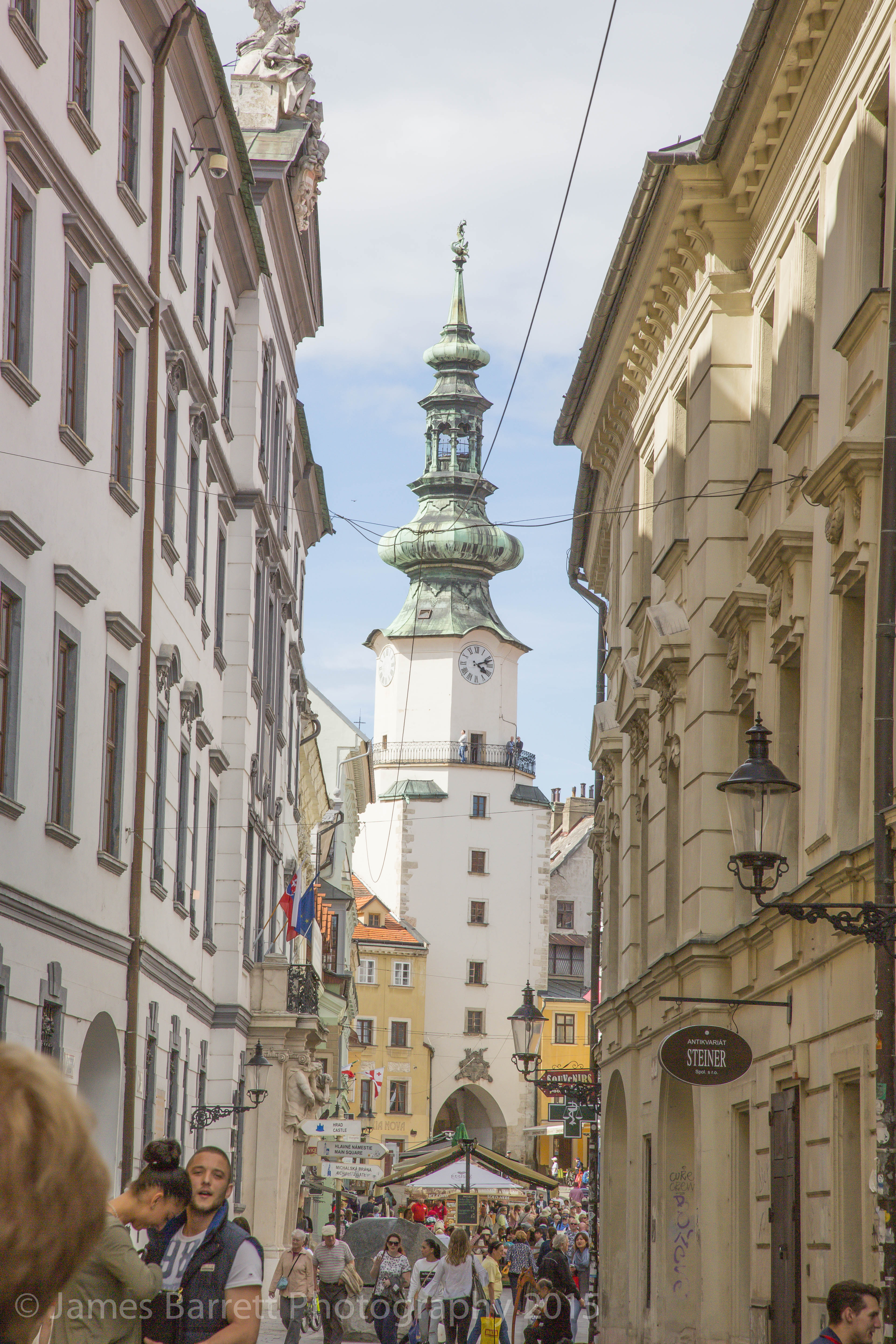 This shot includes Michael’s gate tower, built in the 1300’s, which ranks among the oldest structures in Bratislava. https://en.wikipedia.org/wiki/Michael%27s_Gate