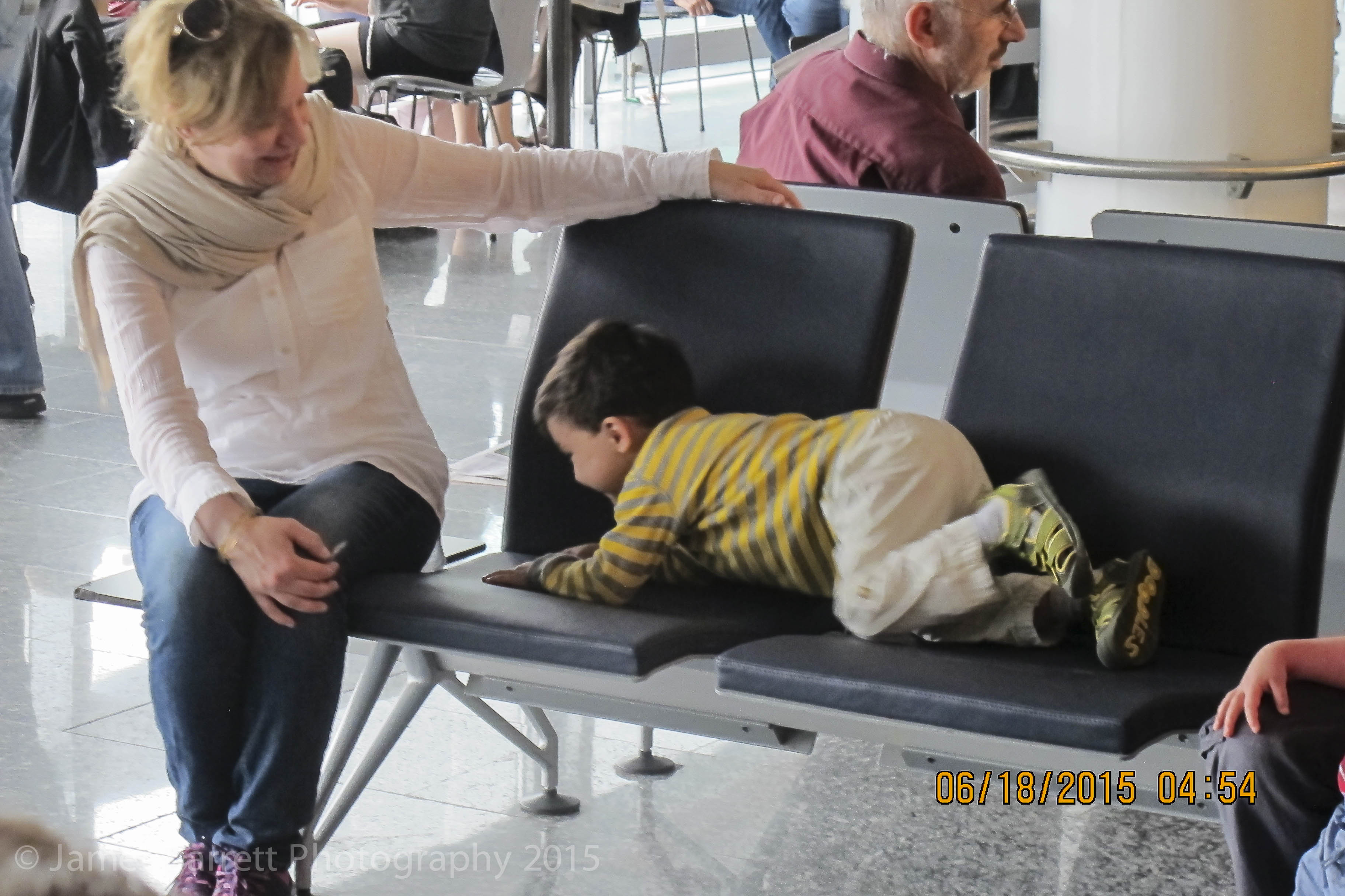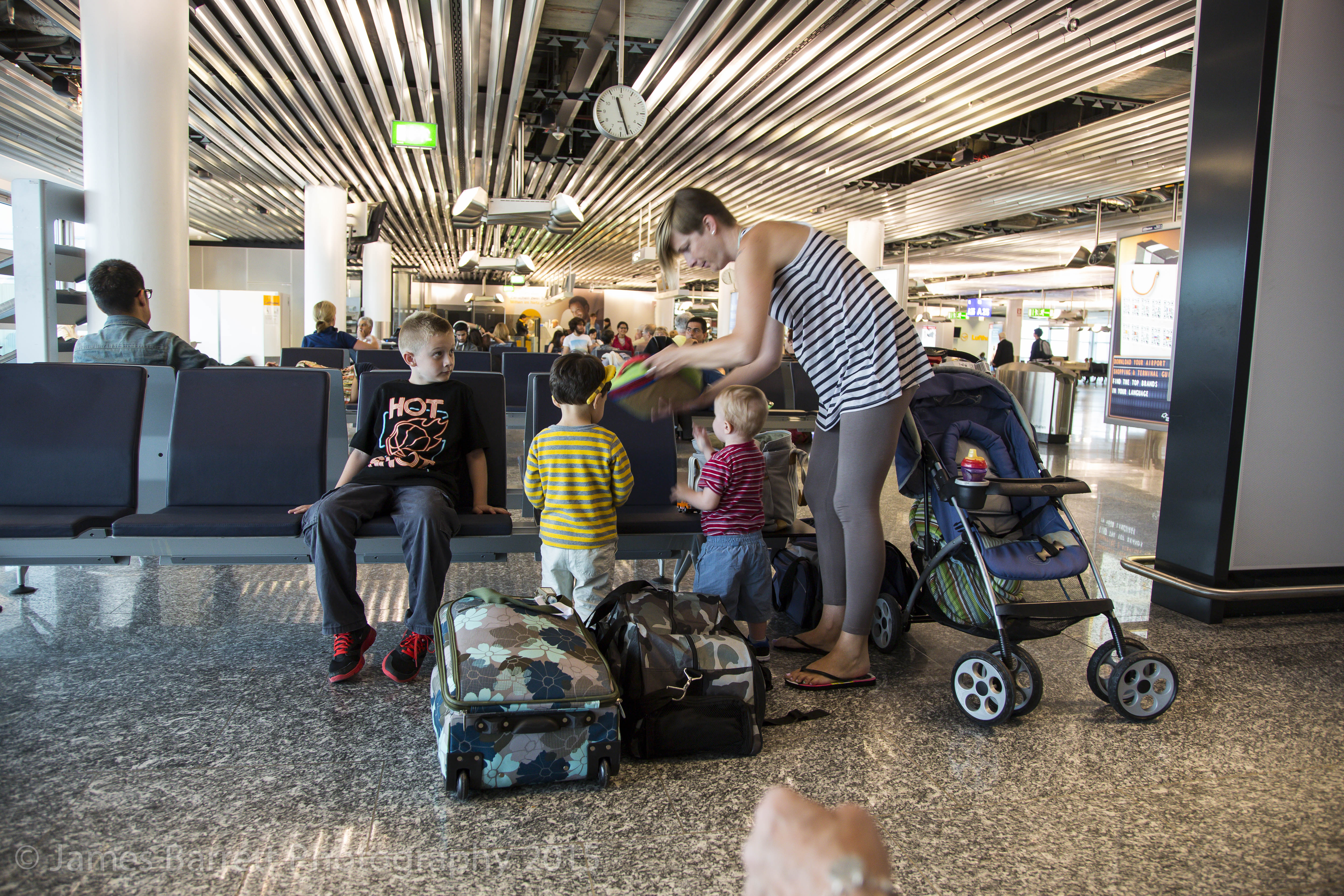 Next we had an overnight flight to Frankfurt during which neither Mason nor his parents slept. During our four and a half hour layover in the Frankfurt airport, Mason showed no sign of fatigue.