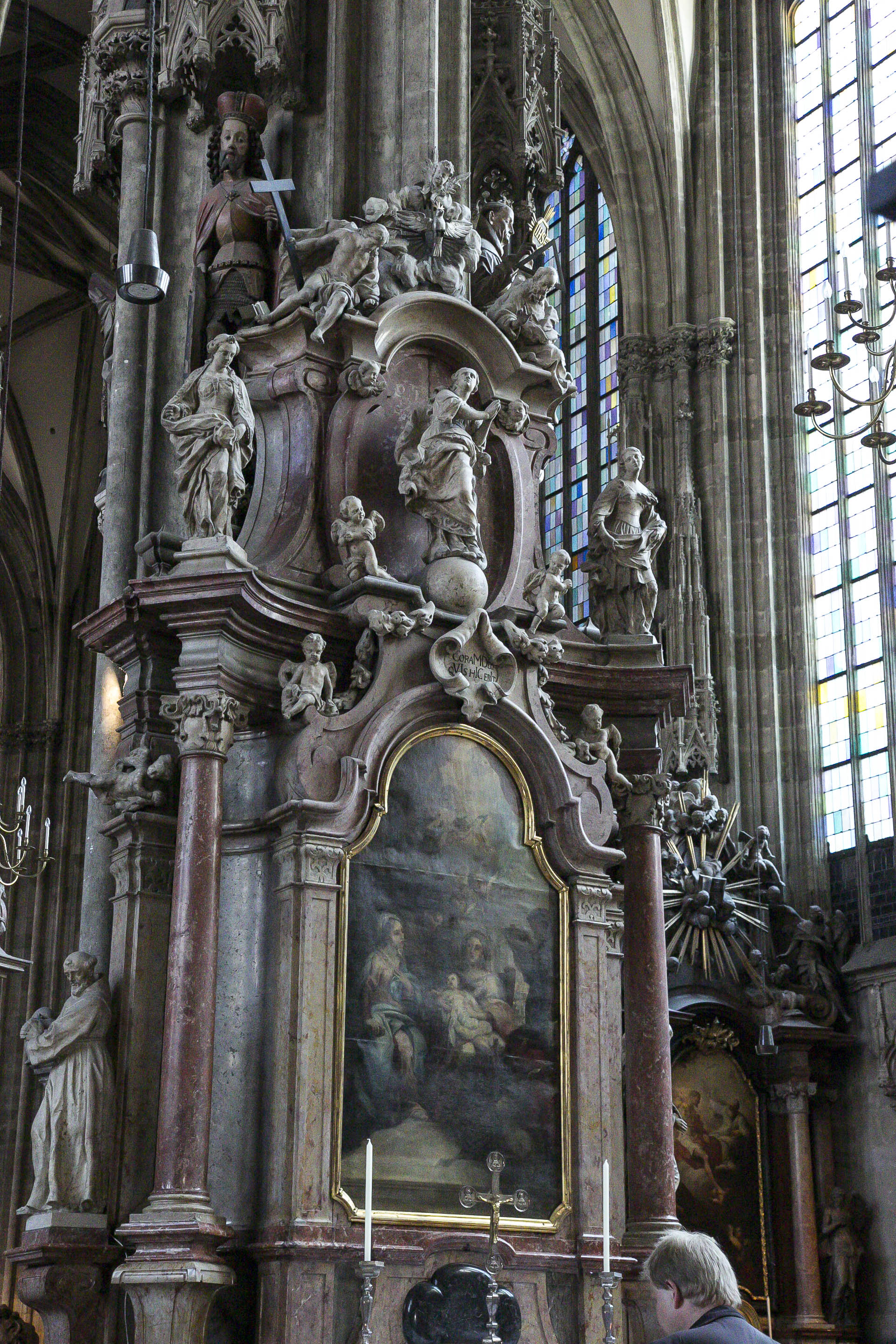 It was a rainy day, fitting for a covered carriage tour of Old Town Vienna followed by a visit to the crypts of St.Stephen’s Cathedral https://en.wikipedia.org/wiki/St._Stephen%27s_Cathedral,_Vienna and, most interestingly, it’s catacombs. Remember that this edifice was constructed upon the remains of an earlier church and founded in 1137. Remember, too, that this place saw not only the bubonic plague https://en.wikipedia.org/wiki/Great_Plague_of_Vienna , and served as the final resting place of part, the entrails, of the Habsburg royals. Here is a quote from the internet: http://www.findagrave.com/php/famous.php?page=cem&FScemeteryid=639506